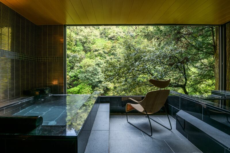 エントランスを通り、正面には黒部峡谷・黒部川を望むラウンジ。四季折々、違った大迫力の景色をお楽しみいただけます。無料でお飲みいただけるコーヒーやココアなどもご用意しております。